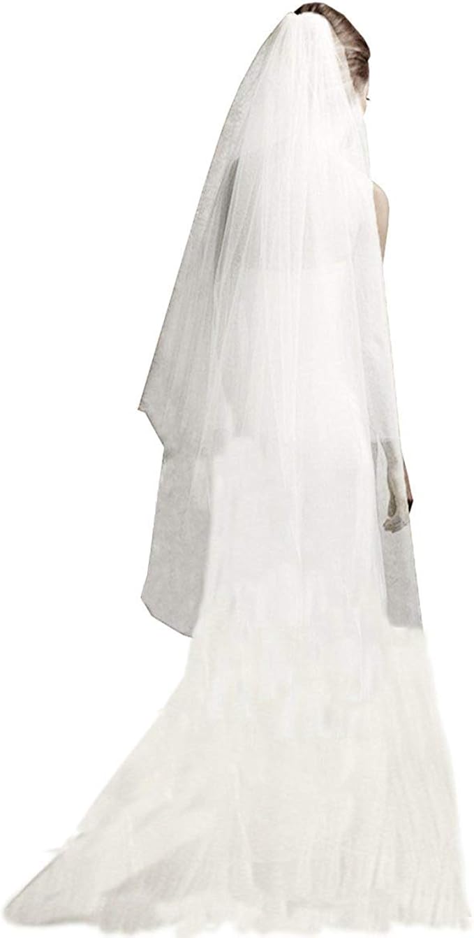 Klgeri Womens Tulle Bridal Veil Long Two Layer Long Boho Wedding