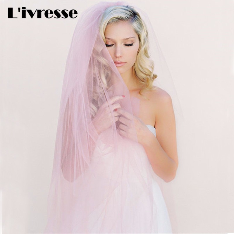 Simple Pink Champagne Tulle Wedding Veils Without Comb Wedding