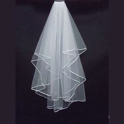 White Ivory Ribbon Edge Cheap Wedding Veils With Comb Simple Short