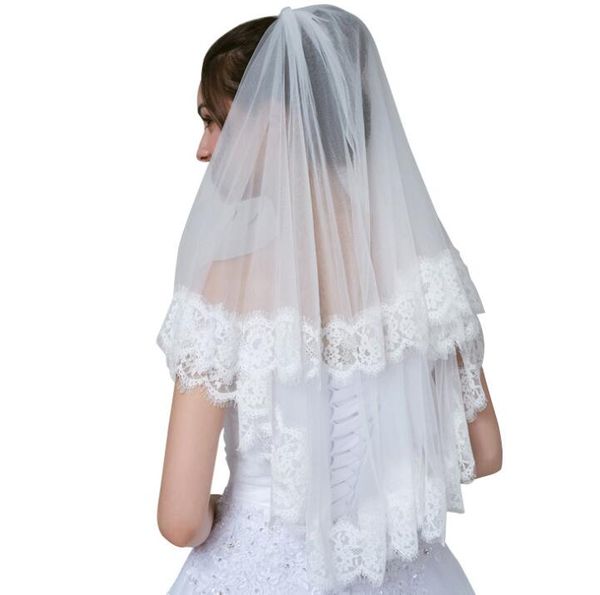 In Stock Cheap Bridal Wedding Veils Short 2 Layers White Bridal