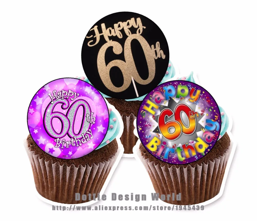 24 60th Birthday Edible Cake Topper Wafer Rice Paper Cake Cookie