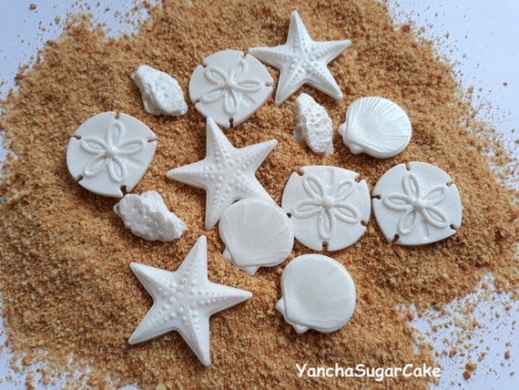 Fondant Seashells Edible Cake Topper Set 24 Wedding Favor Gumpaste