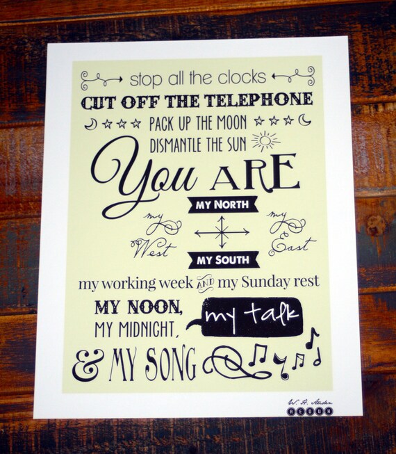 W H Auden Four Weddings Poem Stop All The Clocks Etsy