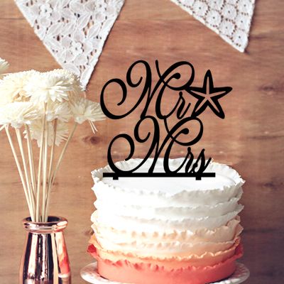 Meijiafei Cursive Mr And Mrs Starfish Beach Nautical Wedding Cake