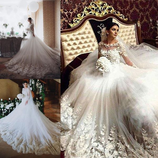 2019 Illusion Neck Middle East Ball Gown Wedding Dresses With