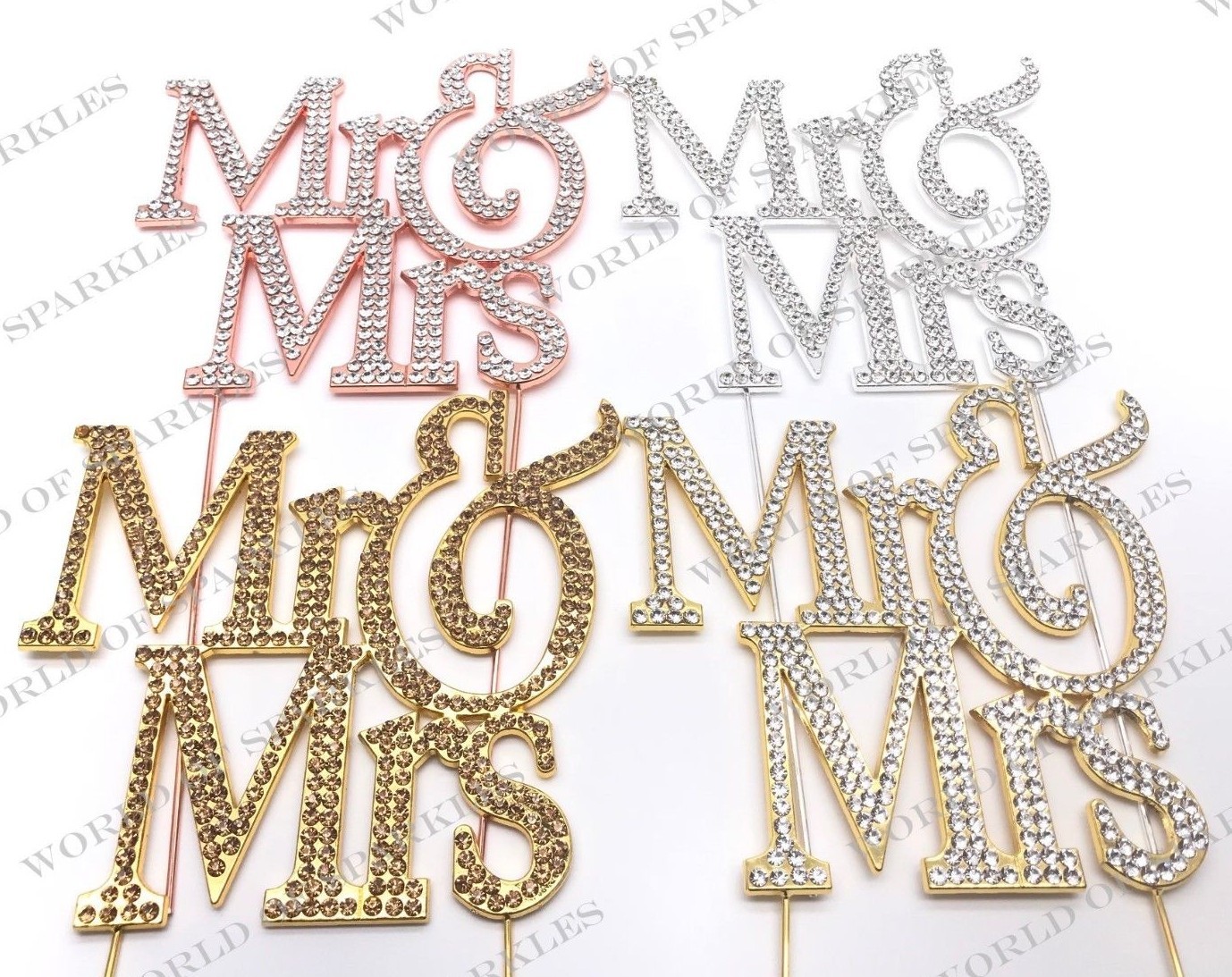 Mr And Mrs Diamante Rhinestone Wedding Cake Toppers Civil Marriage
