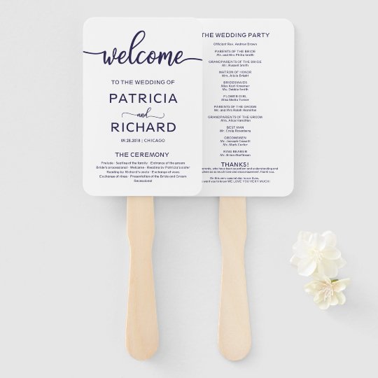 Wedding Ceremony Order Of Service Chic Navy Blue Hand Fan Zazzle Com
