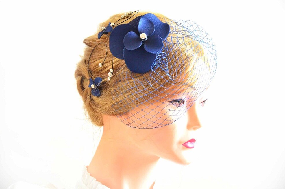 Navy Blue Birdcage Veil With Fascinator Birdcage Veil In Navy Etsy