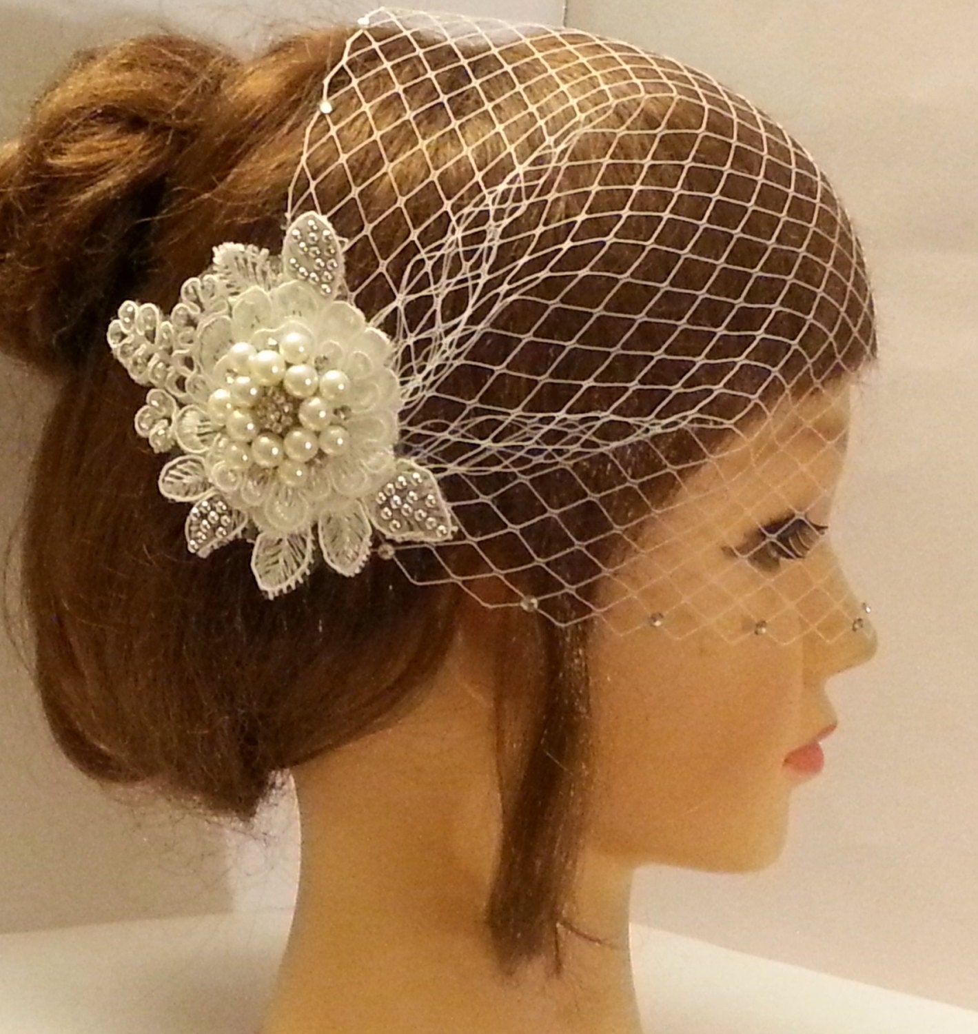 Ivory bridal hat wedding birdcage veil wedding headpiece ivory wedding fascinator on etsy i probably need a fascinator for my wedding shop for bridal hat on etsy the place to express your creativity through the buying and selling of handmade and vintage goods. Wedding birdcage veil with crystal rhiestone wedding birdcage veil i like the side placement of this one love the way this mini veil is positioned on one side. Want it held back with the silver fleur de lis hair comb.