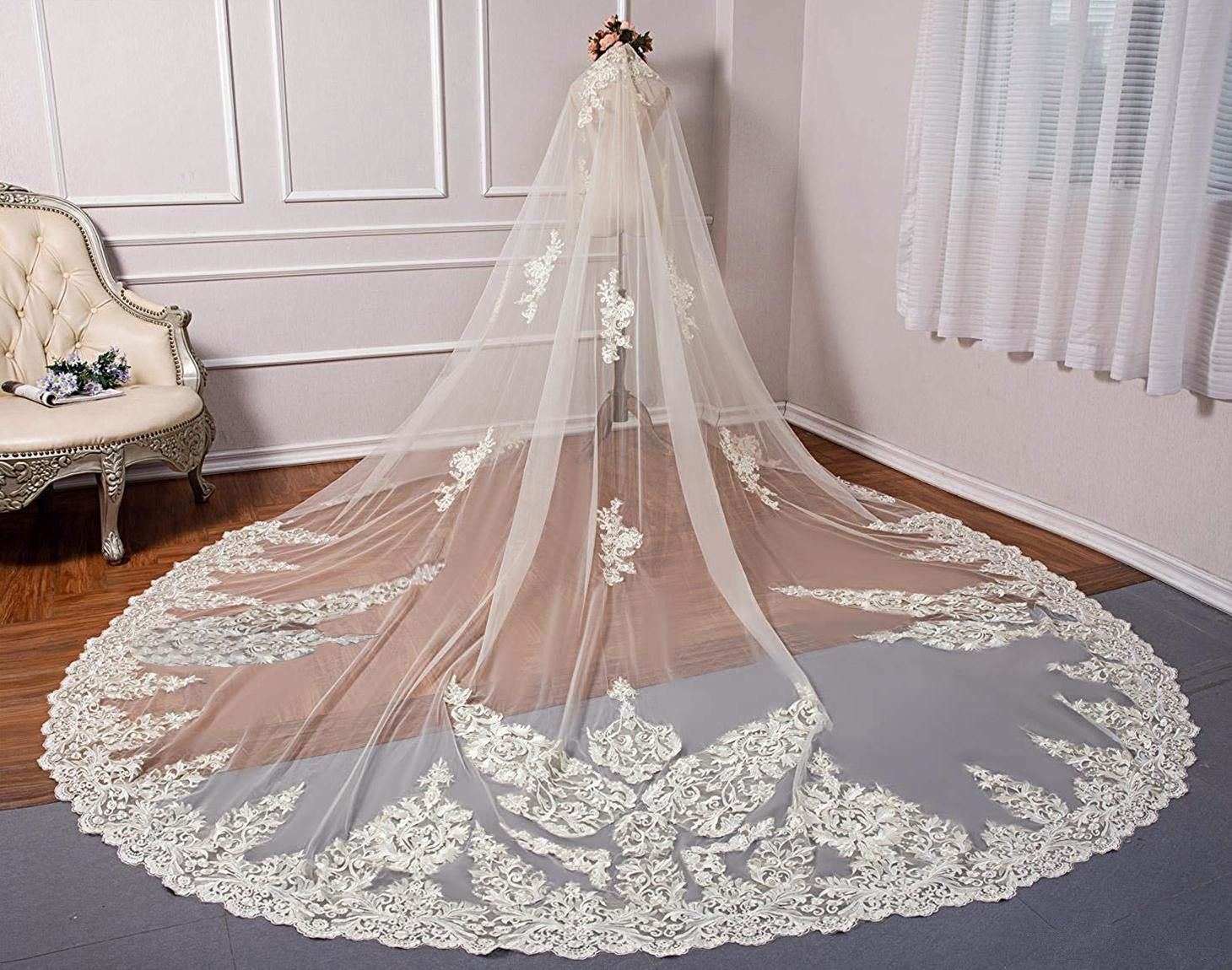 Long White Ivory 4m 13 Ft Lace Cathedral Bridal Veil Tradesy
