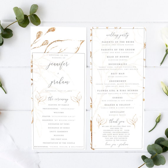 Wedding Programs Template 4x9 Double Sided Gold Wedding Etsy