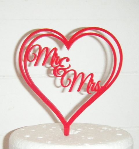 Custom Glass Heart Wedding Cake Topper With Kissing Angelfish