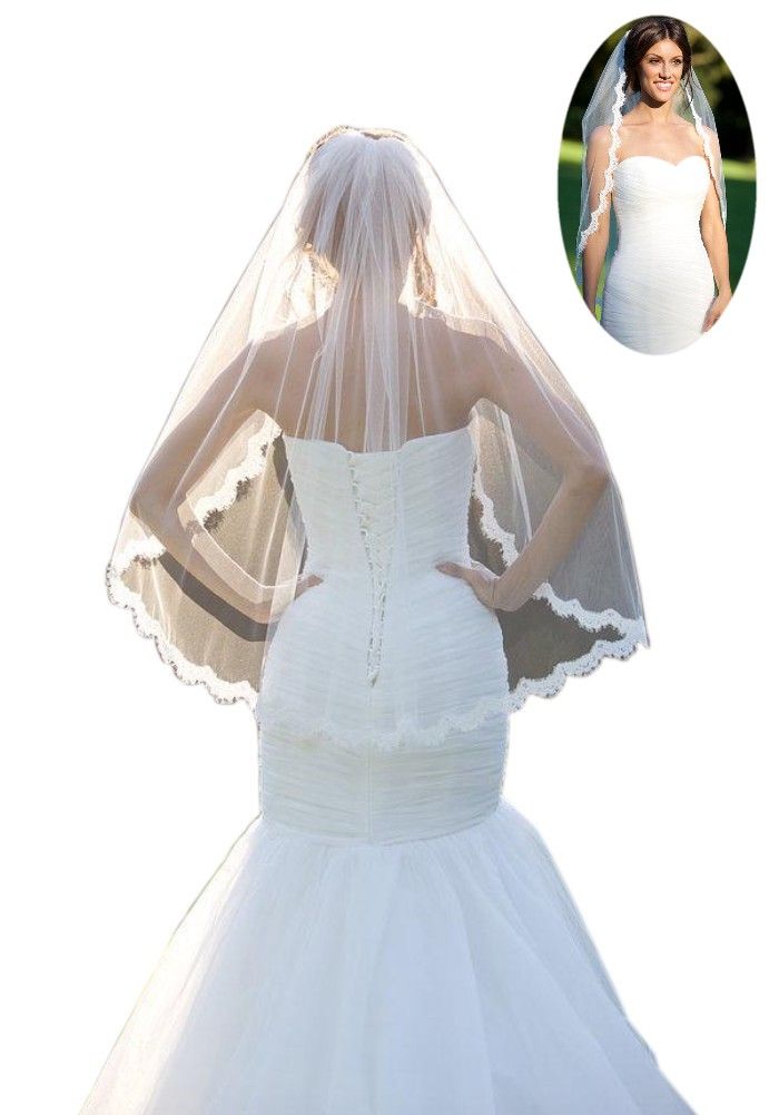 Lace Edge Bridal Veils 2018 Cathedral Length One Layer Fashion