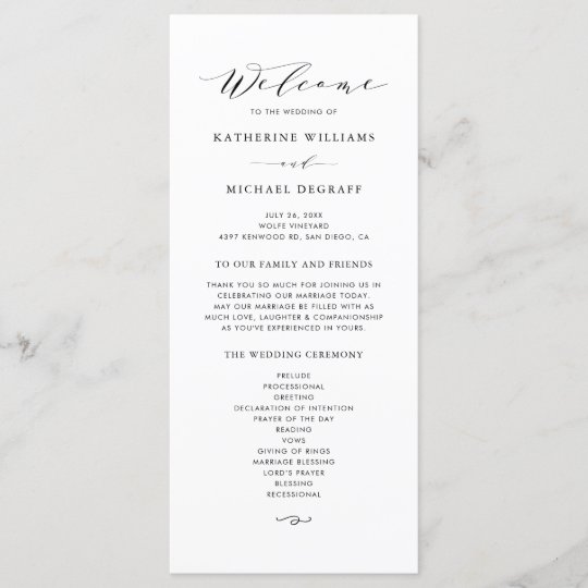 Black Minimalist Dainty Script Wedding Ceremony Program Zazzle Com