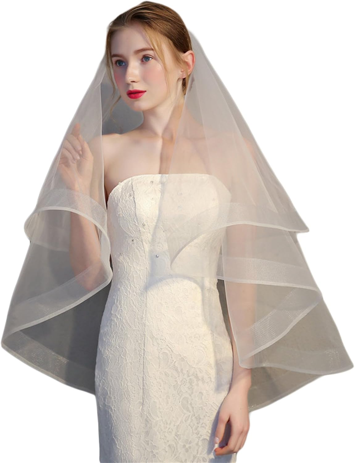 Funan Wedding Veil Two Tier Cathedral Veils Ribbon Edge Organza