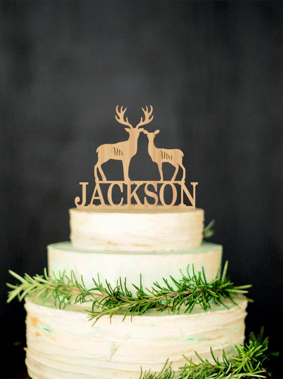 Deer Wedding Cake Topper Mr Mrs Personalized Cake Topper Etsy