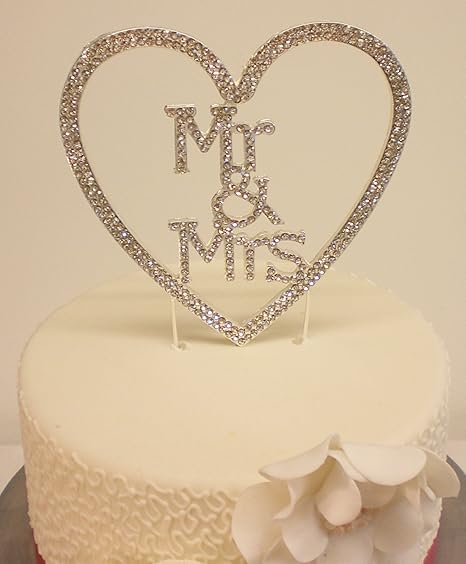 Wedding Cake Diamante Rhinestone Mr Mrs Love Heart Silver Cake