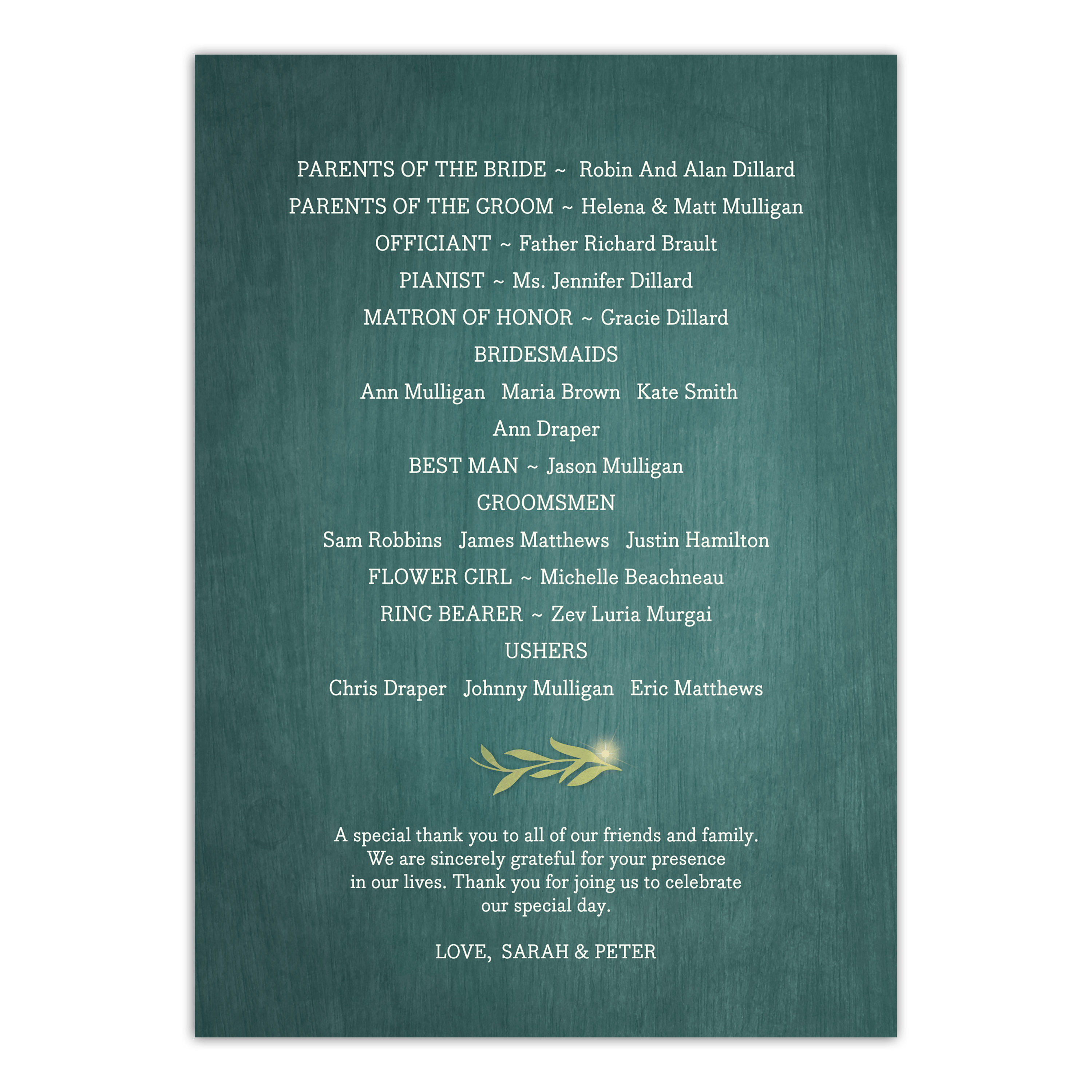 Personalized Wedding Program Greenery Lights 5 X 7 Flat