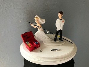 Cake Topper Wedding Bridal Bride Groom Going Gone Fishing Tackle