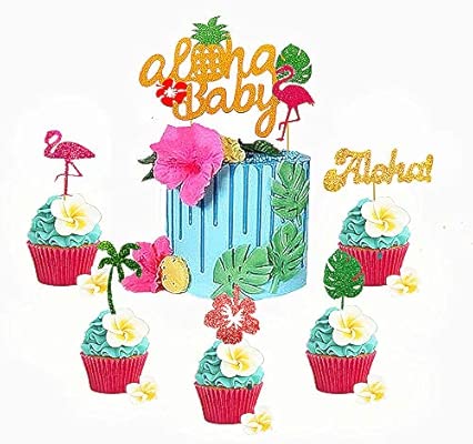 Jevenis Set Of 25 Tropical Cupcake Toppers Aloha Cake Toppers