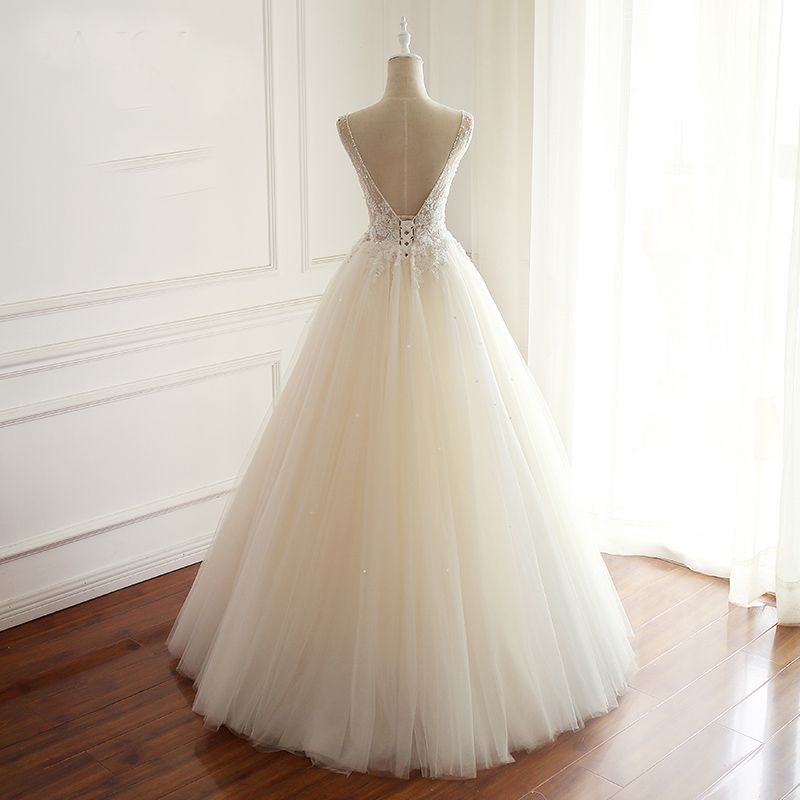 Discount Delicate V Neck White Beautiful Wedding Dresses Lace