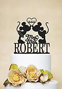Mickey Minnie Wedding Cake Topper Mr Mrs Last Name Glitter Etsy