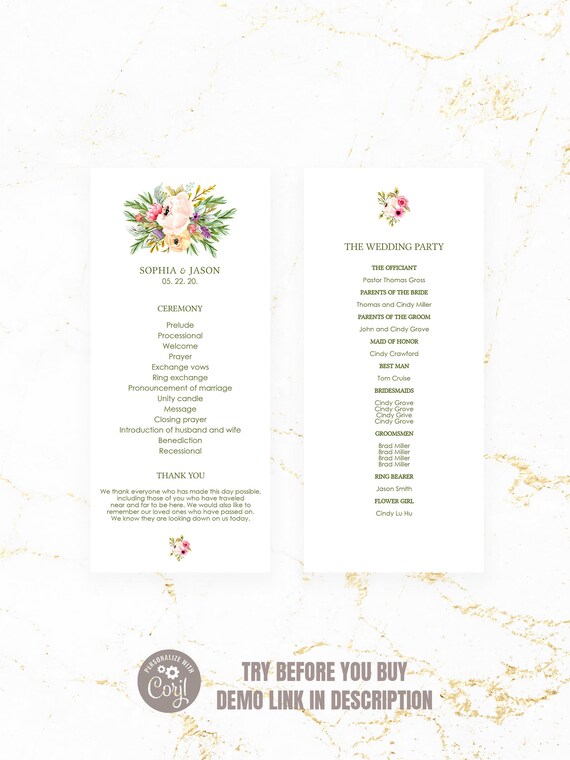 Wedding Program Printable Wedding Program Template Printable Etsy