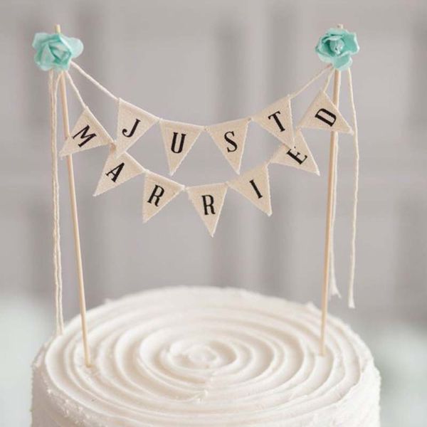 2019 Just Married Wedding Small Banner Cake Topper Romantic