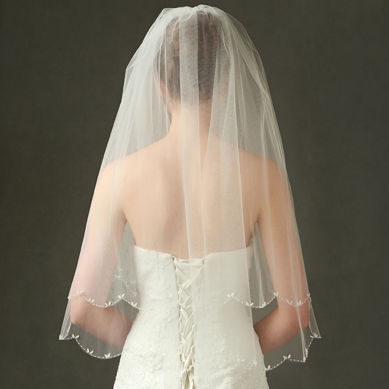 Wedding Veils Elbow Length Beaded Edge 2019 New Style Bridal Veils