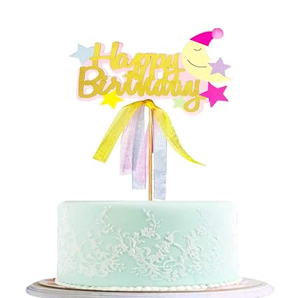 Blingbling Moon Cake Topper Baby Shower Rainbow With Gold Pink