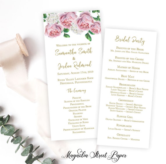 Pink Roses Wedding Program Blush Floral And Gold Order Of Service