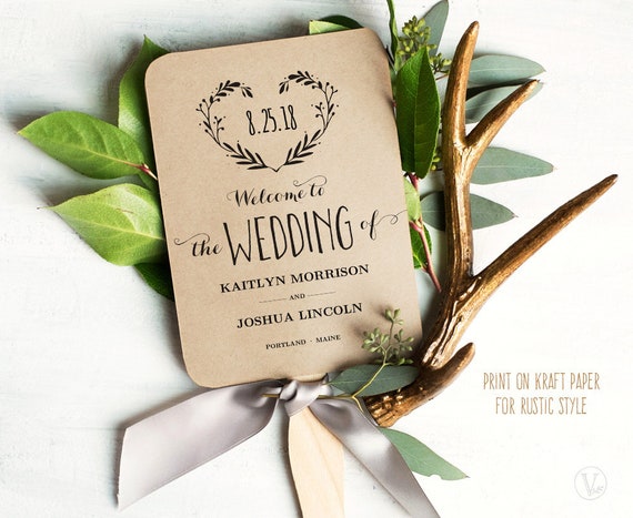 Wedding Fans Printable Wedding Program Template Wedding Fan Etsy