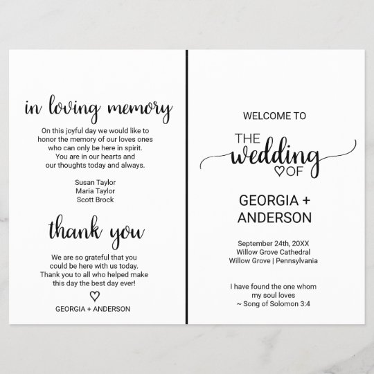 Simple Black Calligraphy Folded Wedding Program Zazzle Co Uk