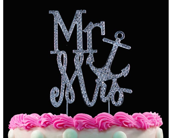 Mr Mrs Anchor Wedding Cake Topper Bling Crystal Cake Topper Etsy