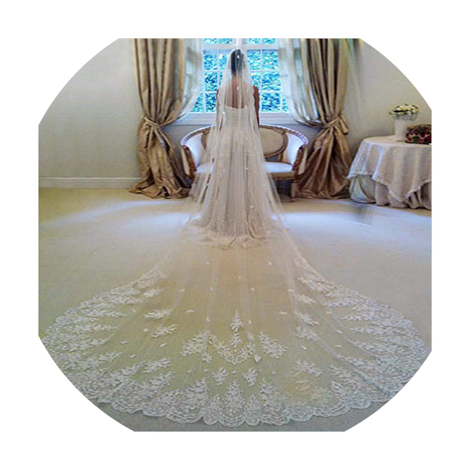 3m One Layer Lace Edge White Ivory Cathedral Wedding Veil Jasmaira
