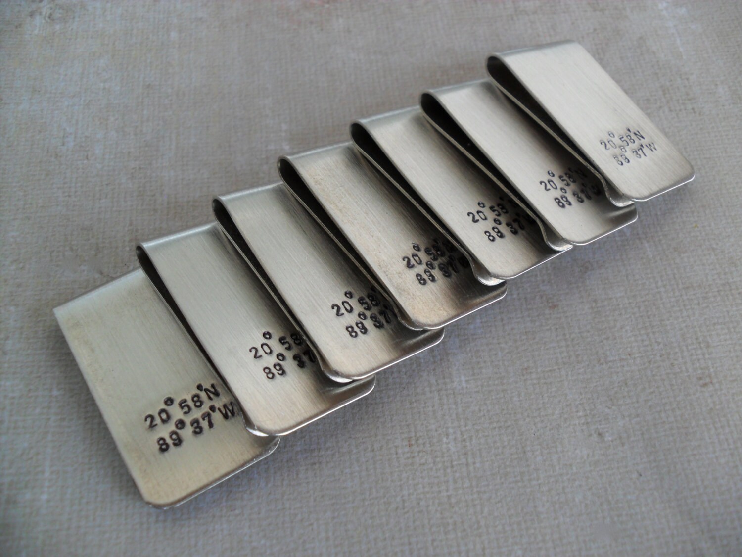 6 Coordinates Money Clips Set Of 6 Custom Groomsmen Gifts Gps