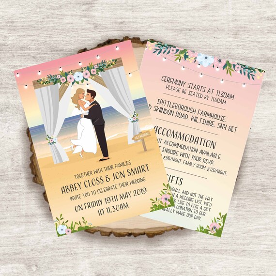 Beach Destination Wedding Invitation Invite Personalised Etsy