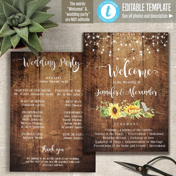 Wedding Program Printable Wedding Template Flat Program Fan Etsy