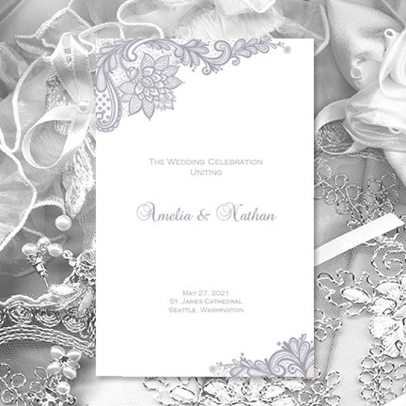 Wedding Program Template Vintage Lace Silver Gray Etsy