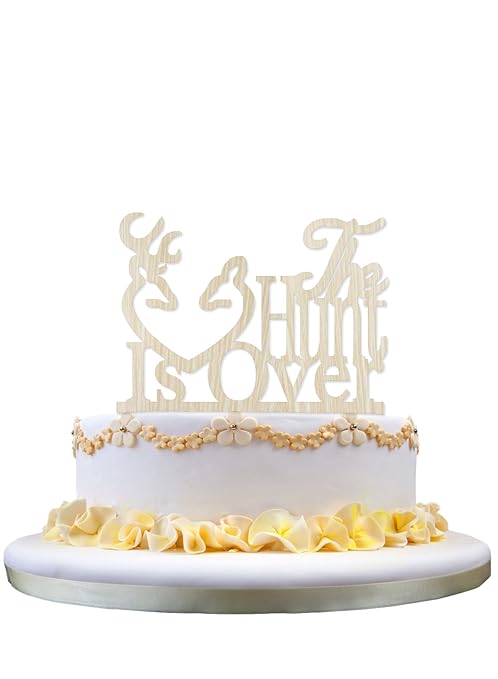 Deer The Hunt Is Over Acrylic Wedding Cake Toppers Wood Color