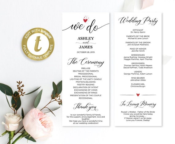 Wedding Program Editable Template We Do Wedding Rustic Etsy