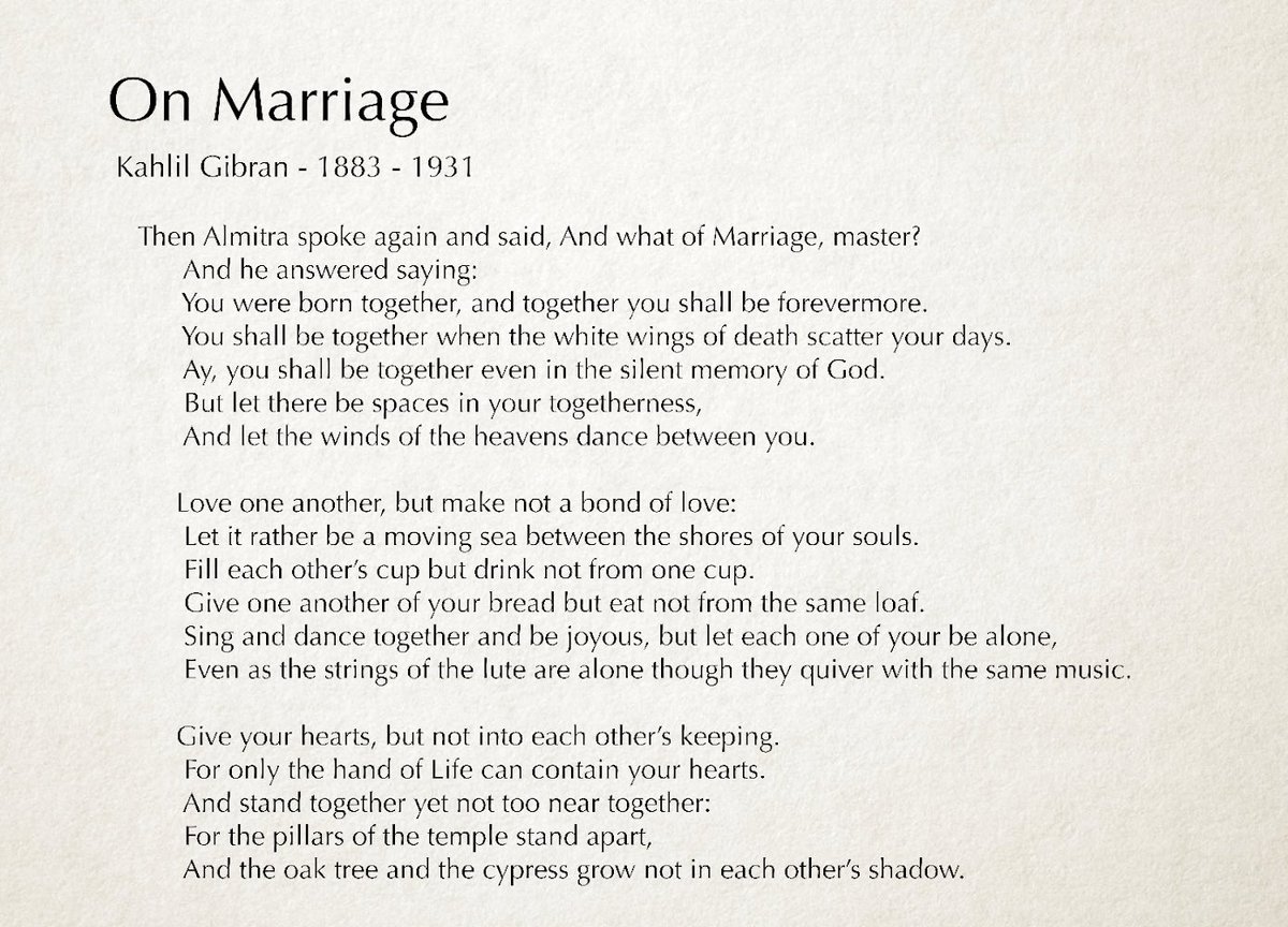 Marriage Advice From Kahlil Gibran Updated With My 19 Years Of