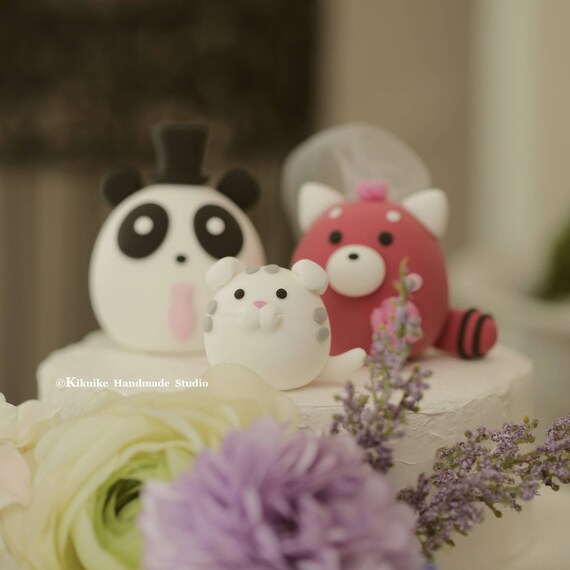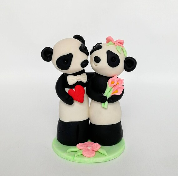 Panda Cake Topper Wedding Figurine Animal Clay Cake Topper Etsy