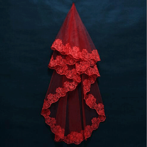 In a traditional chinese wedding ceremony the xinniang bride will wear a red veil made of silk the color red represents happiness in chinathe xinlang groom removes this mysterious red veil in the bridal chamberin china there is a folktale about why the bride wears a red veil during the wedding ceremony. A wide variety of red wedding veil options are available to you such as 100 polyester spandex polyester and viscose polyester.