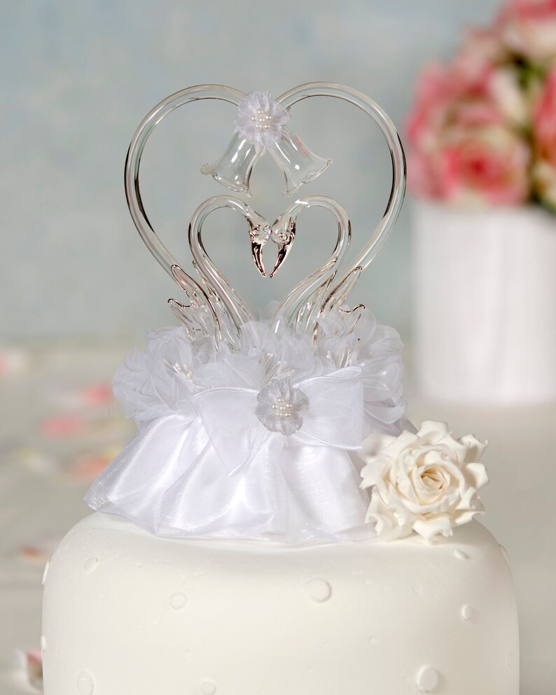 Glass Swan Cake Topper With Heart Wedding Collectibles