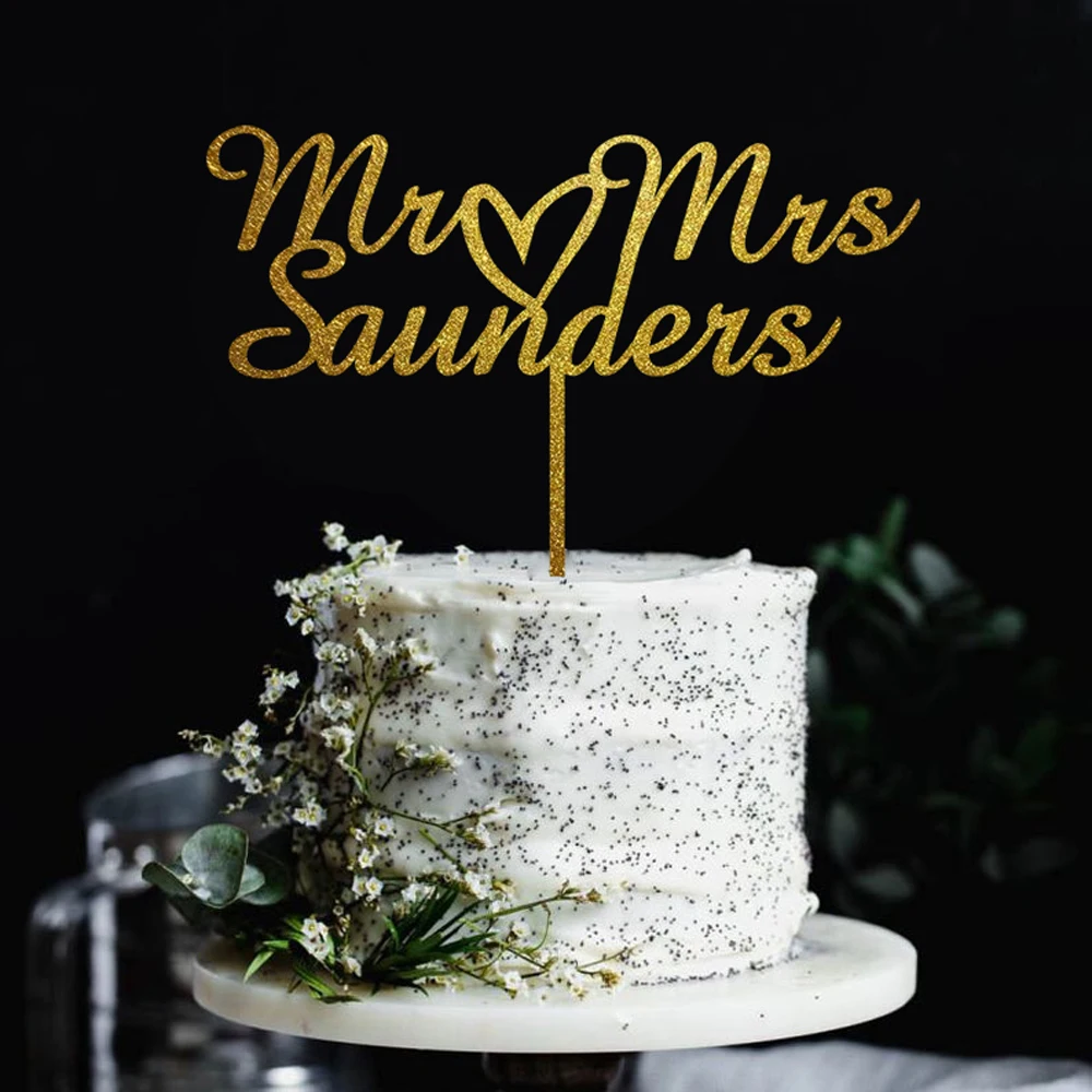 Mr Mrs With Heart Personalized Wedding Cake Topper Custom Last