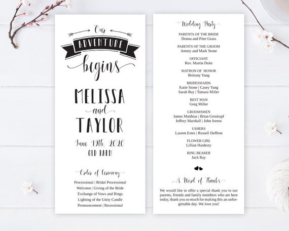 Design your own wedding program. Mountain modern life has designed this free wedding program template that can be used as a program fan or simply printed out on cardstock. Outline your ceremony with a custom designed program thatll impress your guests and serve as a treasured wedding keepsake for years to come.