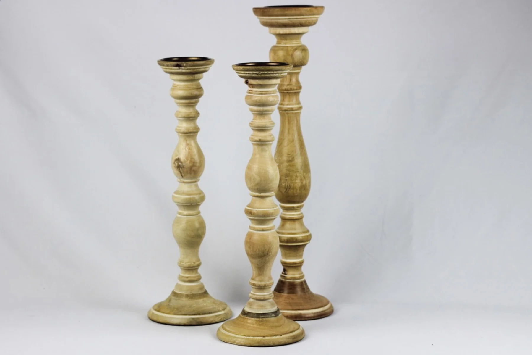 Tall Wood Candle Holders Scavenged Vintage Rentals Specialty