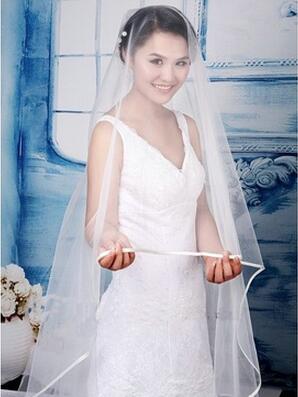 Hot Sale 2 Layer Ribbon Edge Bride Vail White Tulle Elbow Wedding