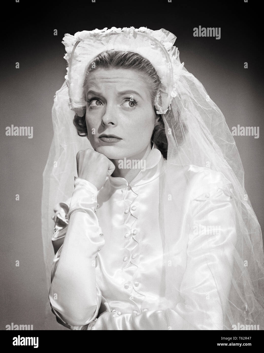 1950s Portrait Of Bride With Worried Uncertain Facial Expression